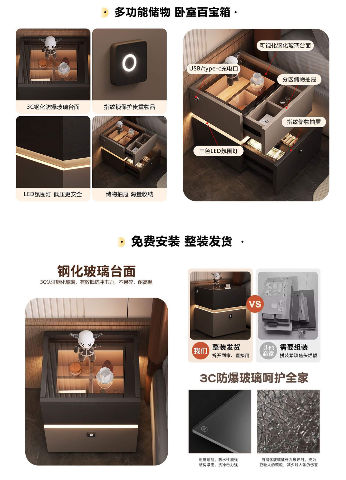 樾记贸易工程公司,专注于智能家居领域,致力于研发、生产及销售创新性的智能家具产品。自成立以来,我们秉承着“科技改变生活,智能家居无处不在”的理念,打造了一系列符合现代人需求的智能家具产品,力求提升生活品质,让家居生活更加便捷、舒适与智能。主要产品——智能床头柜,是我们公司的明星产品之一。此款智能床头柜融合了先进的智能技术与现代家居设计理念,具有以下显著特点:1、智能无线充电:智能床头柜配备无线充电功能,兼容主流手机品牌。2、智能语音控制:床头柜内置语音助手功能,用户只需通过语音命令即可控制柜内的灯光、音响以及其他智能设备的开启或关闭,提升了家居生活的智能化程度。3、内置蓝牙音响:智能床头柜搭载...